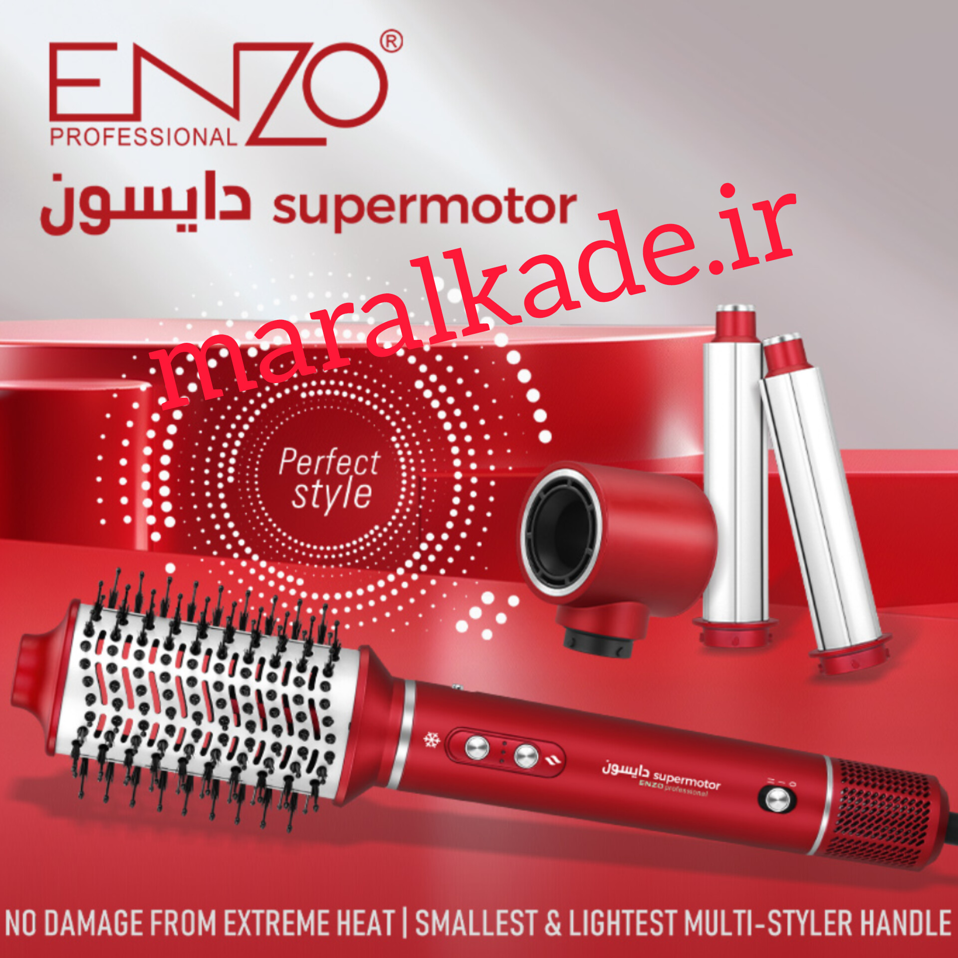 سشوار انزو دایسون سوپر موتور اصل رنگ قرمزبسیار زیبا چندکاره مدل 6225 EN6225