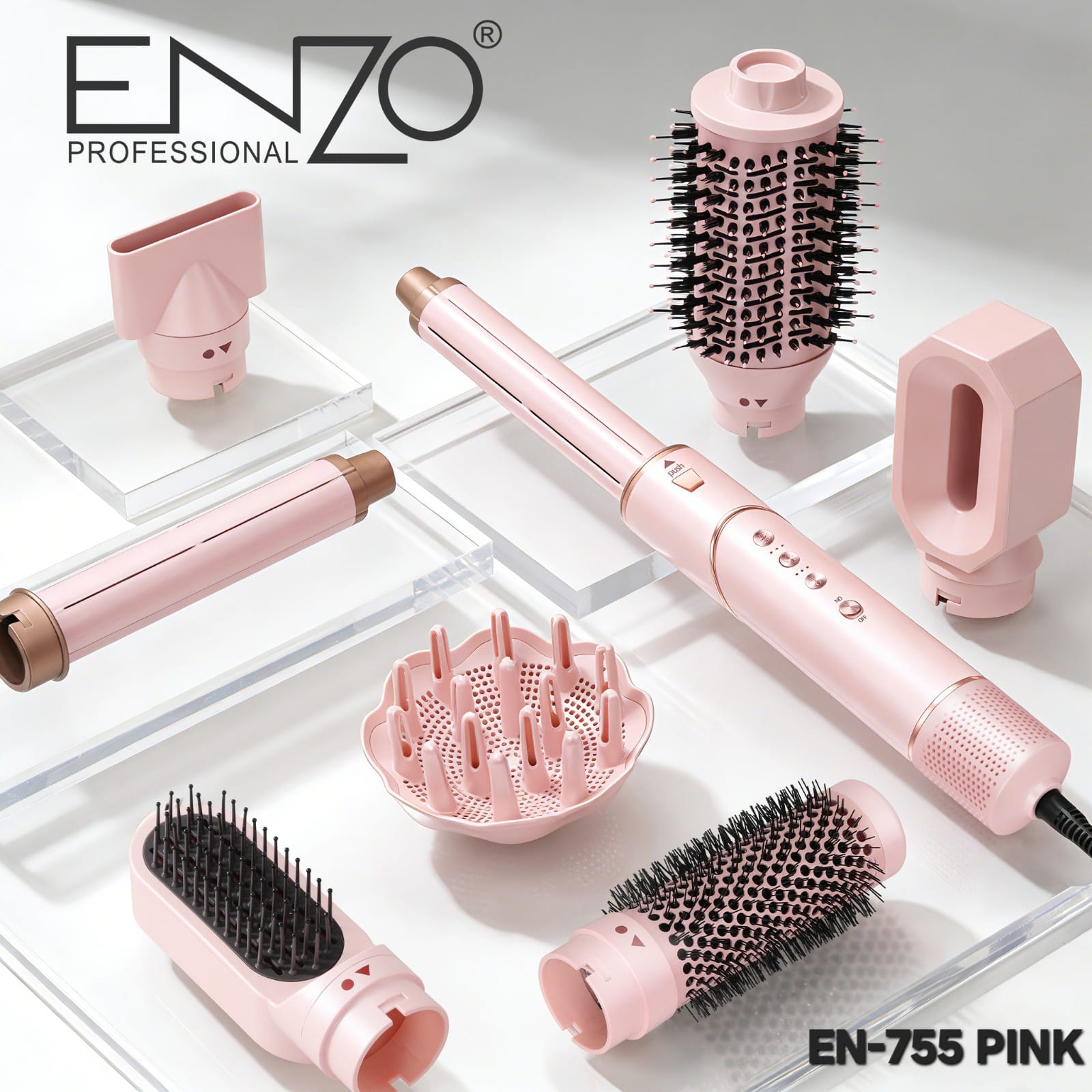 سشوار دایسون انزو 8کاره رنگ صورتی موتور BLDC مدل ENZO EN-755 اصلی همراه با سری دیفیوزر
