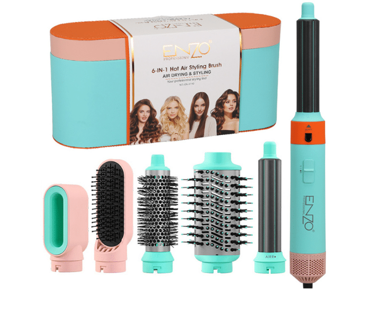 سشوار ۶ کاره انزو طرح دایسون ENZO EN-4140 | برس حرارتی چندکاره سالنی | ENZO 6-in-1 Electric Styling Hot Air Brushسشوار و برس حرارتی چندمنظوره انزو مدل EN-4140 یک ابزار حرفهای برای خشککردن، صافکردن، فرکردن، براشینگ، حجمدهی و شانهکشی یونیک است که با طراحی تخصصی و ۶ سری کاربردی، یک دستگاه کامل برای استایل کردن انواع مو بهشمار می رود. این محصول مناسب استفاده سالنی و خانگی بوده و میتواند جایگزین چندین دستگاه جداگانه در روتین زیبایی شما شود.این هوا استایلر چندکاره با بهرهگیری از تکنولوژی یونساز Ionic و موتور قوی، کمترین آسیب را به مو وارد کرده و در عین حال بهترین نتیجه را برای حالتدهی سریع و بدون دردسر ارائه میدهد.